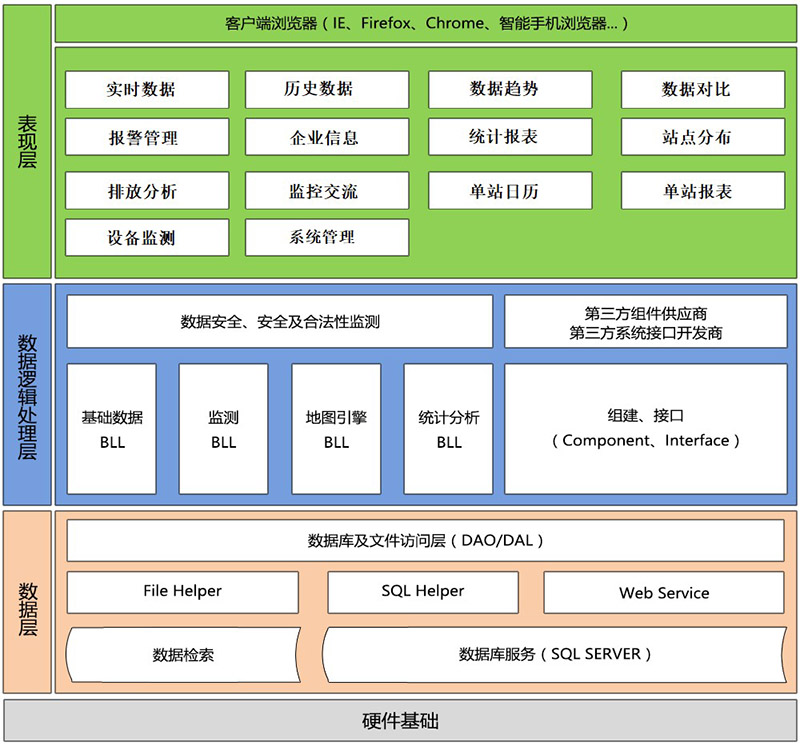 平臺(tái)的主要功能模塊包括:實(shí)時(shí)數(shù)據(jù)、歷史數(shù)據(jù)、數(shù)據(jù)趨勢(shì)、數(shù)據(jù)質(zhì)量、站點(diǎn)分布、統(tǒng)計(jì)報(bào)表、單站報(bào)表、數(shù)據(jù)通比、單站日歷、排放分析、報(bào)警管理、企業(yè)信息、監(jiān)控交流和系統(tǒng)管理等。